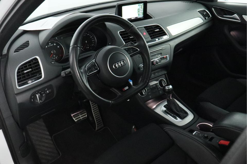 De meest gebruikte voertuigfuncties laten zich met behulp van uw stem bedienen. Nooit meer de weg zoeken en ontspannen arriveren bij uw reisdoel. Met het MMI navigatiesysteem zit u veilig en ontspannen in de auto. Volautomatische airconditioning regelt volautomatisch de temperatuur. U kiest de gewenste temperatuur en het systeem doet de rest. Een plekje vinden in de binnenstad is één, inparkeren is twee. Voor dat laatste heeft deze Audi Q3 prima parkeersensoren die u een handje helpen. Om de veiligheid onderweg te verhogen, heeft deze Audi zowel een automatisch inschakelbare verlichting als een regensensor aan boord, zodat hij zelf de verlichting en de ruitenwissers kan inschakelen. De Audi is standaard voorzien van: 3-spaaks lederen sportstuur, cruise control, centrale deurvergrendeling met afstandsbediening en boordcomputer.