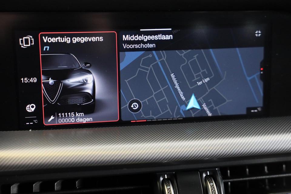 De nieuwste veiligheidssystemen komen in deze Alfa Romeo STELVIO samen. In het instrumentarium kunt u bovendien de verkeersborden zien die u onderweg tegenkomt. Zo helpt deze Alfa Romeo u om veiliger te rijden. Met het Lane-keeping systeem komt u nooit per ongeluk buiten de rijstrook. De dodehoekdetectie waarschuwt als een ander voertuig zich in uw dode hoek bevindt. Ook helpen het accident avoidance system, forward collision warning system, hill hold functie, Abs - anti blokkeer systeem met brake assistant, vermoeidheidsherkenning en bandenspanningcontrolesysteem, uw rit tot een veilige rit te maken.