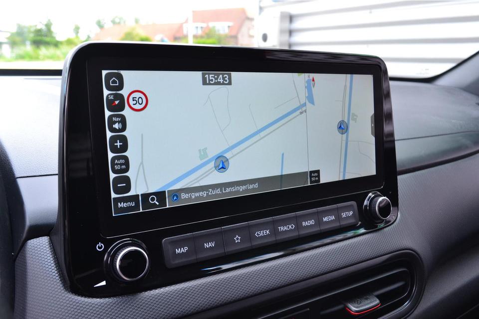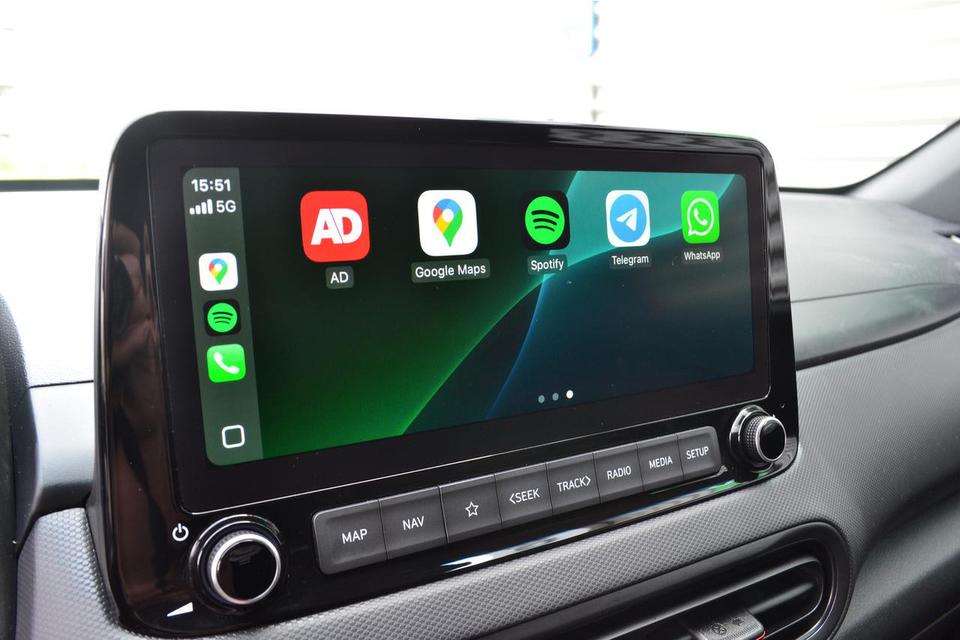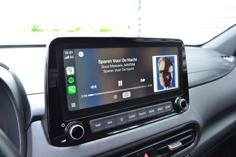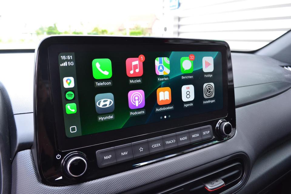 Bij deze KONA kan ook gebruik worden gemaakt van Apple Carplay en Android auto .