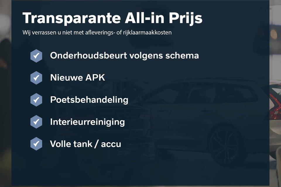 Via het digitale dashboard bent u permanent op de hoogte van alle informatie die u nodig heeft voor een veilige rit. Met de achteruitrijcamera ziet u precies wat er achter de auto gebeurt. Adaptive cruise control is een comfortabele en veilige optie. Het systeem reguleert de snelheid en houdt automatisch afstand tot uw voorligger. De auto's van vandaag rijden niet alleen subliem, maar luisteren ook goed. Via een speciale app kunt u overal diverse functies controleren en de status van de auto inzien. Waarheen gaat de reis? Het navigatiesysteem brengt u trefzeker ter plekke! Natuurlijk behoren kruisend verkeer detectie, electronic climate control, DAB ontvangst, regensensor, keyless entry en automatisch dimmende binnenspiegel ook tot de uitrusting van deze complete auto.