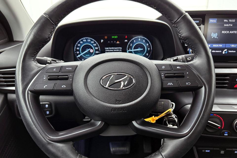 Voor het overzicht tijdens iedere rit is deze Hyundai i20 voorzien van een gemakkelijk afleesbaar digitaal dashboard. Afstand schatten bij het achteruitrijden? Niet nodig. U weet het precies, dankzij de achteruitrijcamera. Intelligente spraakbediening herkent uw commando's en voert opdrachten snel en soepel uit. Pech of storing, altijd vervelend. Maar met Connected Services weet u direct wat eraan scheelt. En dus ook wat er moet gebeuren. Voor wie hoge eisen stelt aan geluid en akoestiek, is deze auto voorzien van een high performance audiosysteem. De uitrusting van deze Hyundai is met DAB ontvangst, cruise control, airconditioning, isofix-aansluiting en centrale deurvergrendeling met afstandsbediening behoorlijk compleet.