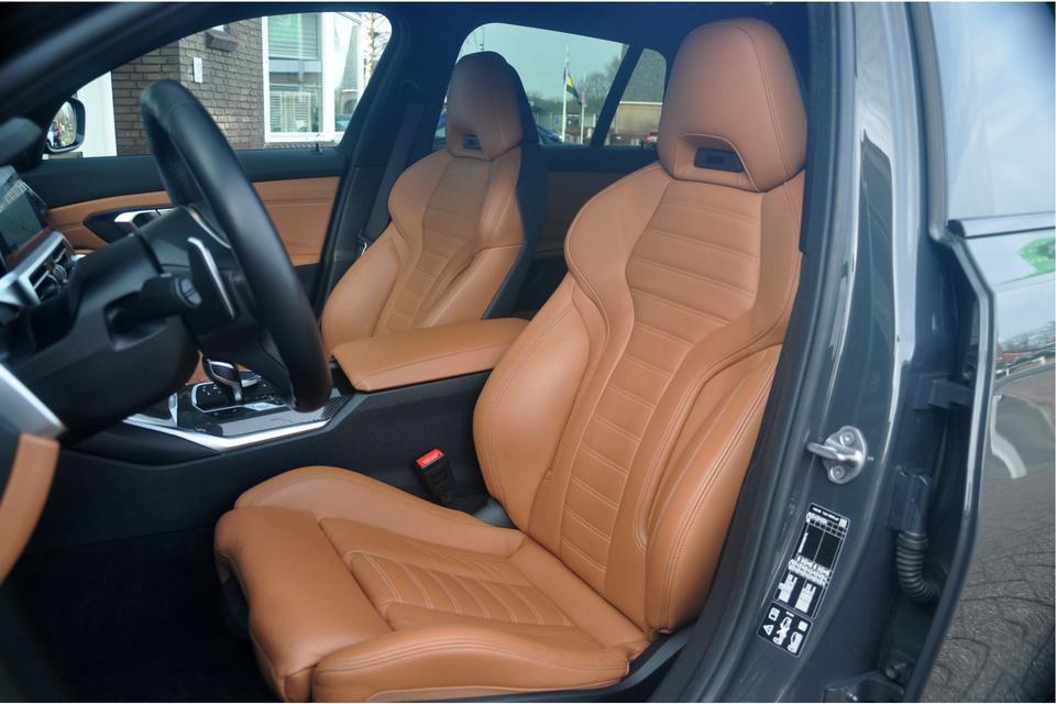 Fabrikant: Autobedrijf Lokhorst-Zoet B.V. Zuiderzeestraatweg Oost 17 8081LA ELBURG, NL 0525681438 http://www.lokhorstzoet.nl verkoop@lokhorstzoet.nlZeer mooie en dik uitgevoerde BMW M340i Touring in de kleur Dravit Grau en 19 inch M3-velgen. Aan de binnenzijde vinden we het sportinterieur voorzien van het prachtige Cognac Vernasca leder. Verder heeft de eerste eigenaar deze auto rijkelijk voorzien van opties: denk aan het elektrisch bedienbaar schuif-/kanteldak, head-up display, Harman Kardon-audio, adaptieve cruise control met stuurhulp, laser-verlichting etc.
