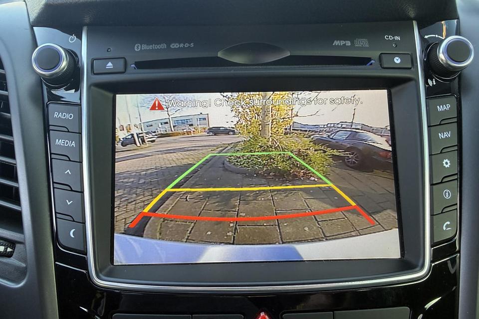 Altijd achter zicht, nooit meer nekkramp! De achteruitrijcamera maakt het supermakkelijk. Deze auto kent elke bestemming als z'n broekzak, dankzij het navigatiesysteem. U verwacht natuurlijk electronic climate control in deze auto, en die is er dan ook. Het geluidssyteem in deze Hyundai i30 is regelbaar met behulp van de audiobediening op het stuur. Een stabiele en comfortabele snelheid houdt u feilloos aan met de cruise control. De uitrusting van deze Hyundai is met automatisch dimmende binnenspiegel en centrale deurvergrendeling met afstandsbediening behoorlijk compleet.