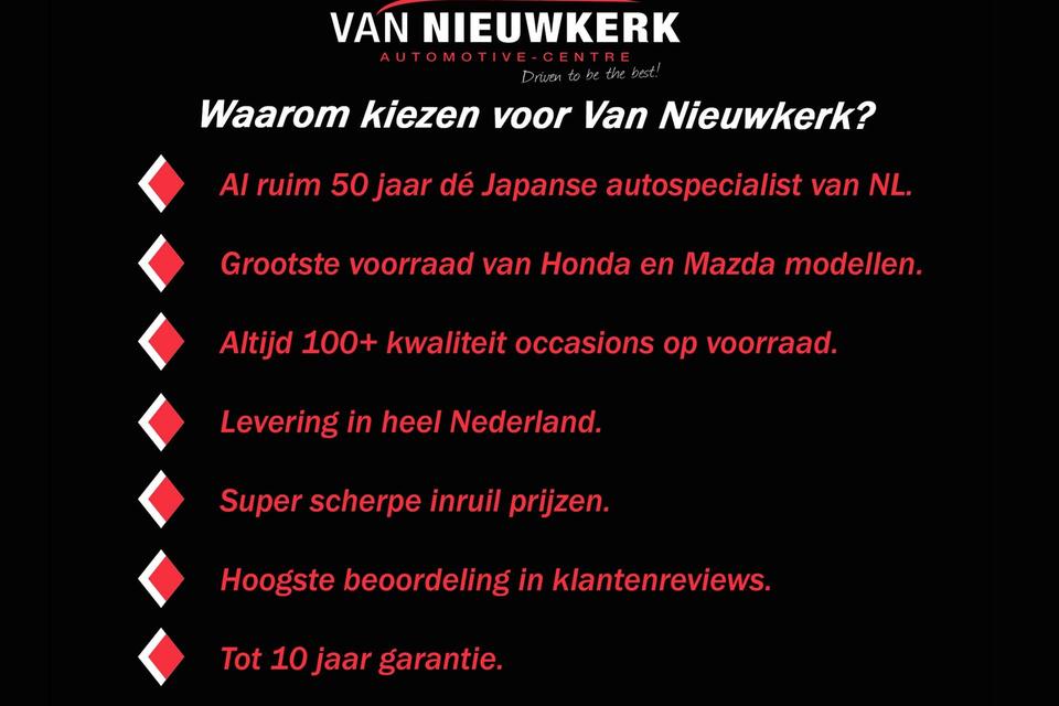 Als officieel Honda en Mazda dealer willen wij u graag naast deze basis rijklaarprijs onze verregaande service aanbieden. Hierdoor kunt u de auto aanschaffen met 3 Service & Garantiepakketten. Kijk voor meer informatie op https://honda.vannieuwkerk.nl/occasions of vraag het een van onze adviseurs.