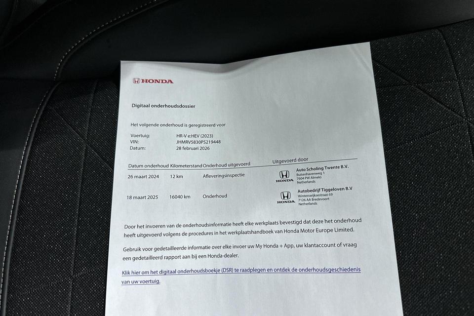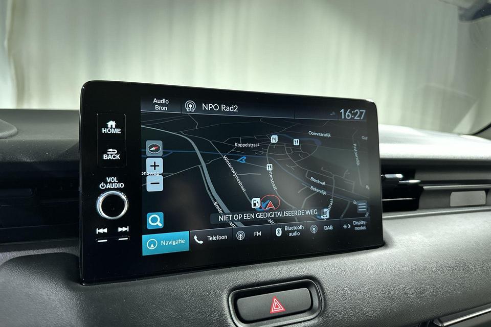 Hoeveel ruimte heeft u nog bij het inparkeren? De achteruitrijcamera brengt helder in beeld wat zich achter de auto bevindt en geeft een geluidssignaal. Met adaptive cruise control houdt de auto zelfstandig afstand tot uw voorligger. Een veiligheidsverhogende optie waarmee u comfortabel onderweg bent. Rijden-stilstaan, rijden-stilstaan. Niks is irritanter en vermoeiender dan filerijden. Daar heeft deze Honda HR-V een oplossing voor: de file assistent, die met radarmeting permanent het tempo aanpast op de voorligger. Zelfs als die stopt. De ingebouwde Connected Services vertellen u via de app alles over de status van de auto. Locatie, onderhoudsstatus, brandstofpeil en nog veel meer! Het full map navigatiesysteem zorgt ervoor dat u snel en ontspannen op uw bestemming aankomt. Natuurlijk behoren achteropkomend verkeer waarschuwing, electronic climate control, DAB ontvangst, regensensor, keyless entry en automatisch dimmende binnenspiegel ook tot de uitrusting van deze complete auto.